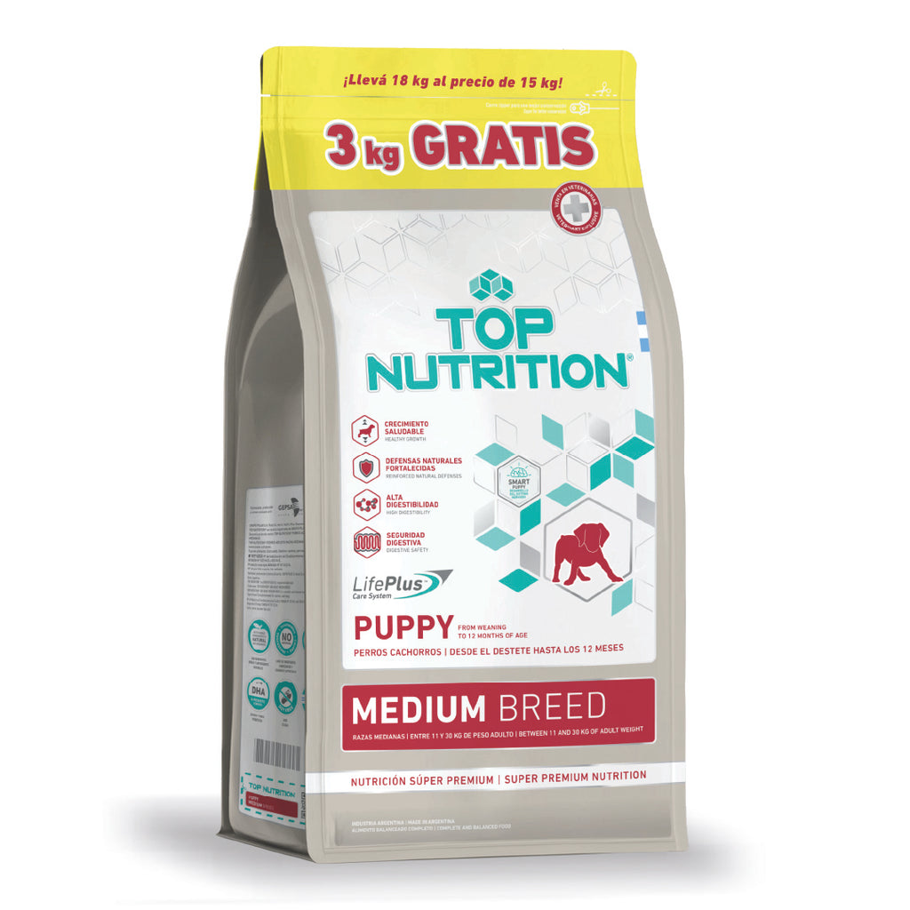 Alimento Top Nutrition Perro Cachorro Mediano 15+3kg